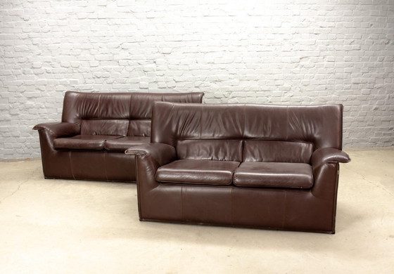 Afra and Tobia Scarpa Design Mid-Century Italian Design Chocolate Brown Leather Two Seat Sofa, Model Lauriana for B&B Italia.