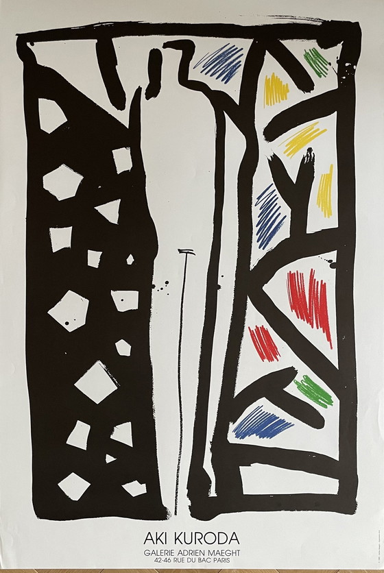 Aki Kuroda, Galerie Adrien Maeght, copyright 1986 Adrien Maeght, Impriemerie Arte, Printed in France Possède une superbe affiche vintage de l'artiste renommé Aki Kuroda, créée pour la Galerie Adrien Maeght et imprimée en France par l'Imprimerie Arte. En bon état avec une usure mineure et jamais encadrée, elle est expédiée en toute sécurité dans un tube solide. Ne manquez pas cette pièce de collection rare - enchérissez maintenant