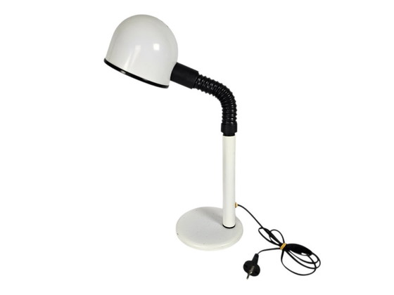 Retrouvez le charme des années 80 avec cette lampe de table postmoderne signée Alda, fabriquée en Suède. Cette lampe allie un élégant coloris blanc et noir à un mélange innovant de métal et de plastique, ce qui en fait une pièce remarquable pour tout bureau ou espace de travail.
