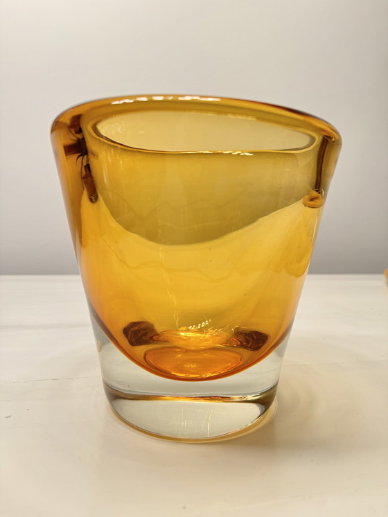 Ambre doré Murano Sommerso plateau / vase. Plateau lourd / 3,6 kg Dimensions : 18x18 cm Quelques rayures à l'intérieur. Rayures sur le fond et petit éclat.