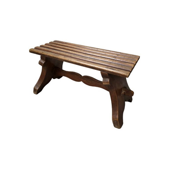 Ancien pouf en noyer français, du milieu du 20e siècle. Joli pouf en bois de noyer à lattes ou à utiliser comme tabouret. Il a pris une belle patine à l'usage.