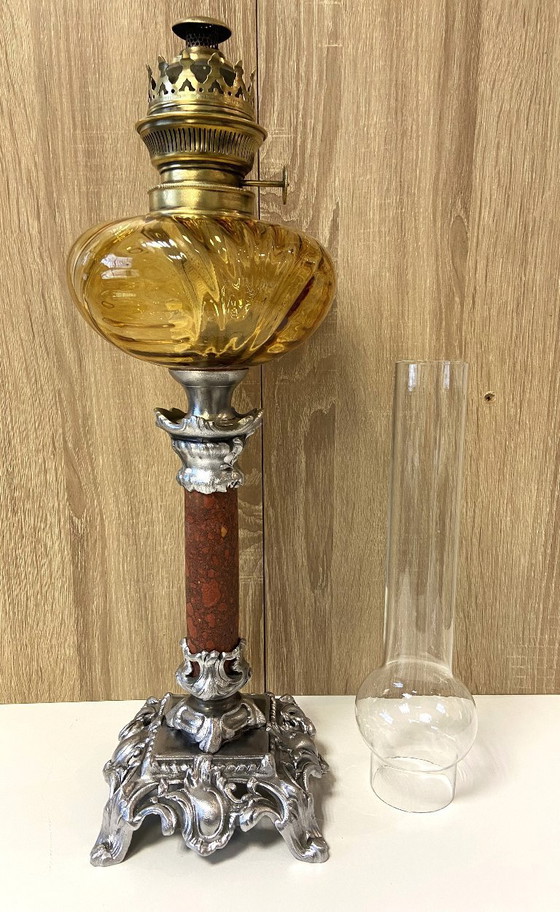 Ancienne & Élégante Grande Lampe de Salon à Pétrole Lampant / Huile ou Kérosène ...