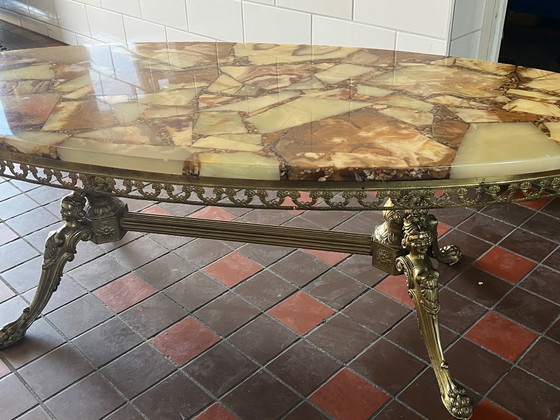Ancienne table basse en marbre Pieds en cuivre Vintage Onyx