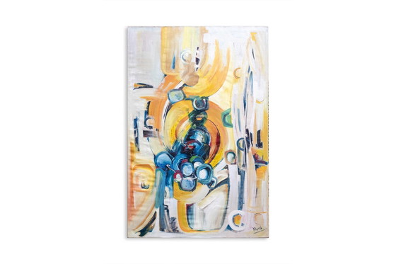 André Klumb pour Maison Jansen. Huile sur toile abstraite « L’homme à la moto ». Travail français réalisé dans les années 1970. Dimensions : H 270 x L 180 x P 3 cm Référence : LS61631153T