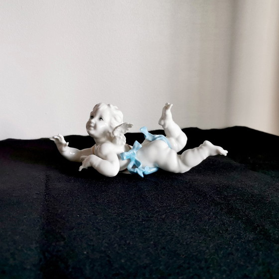 Ange en porcelaine véritable Algora, mesure : 20 cm de long. La porcelaine est comme neuve, sans éclats ni fissures. La base porte la signature, le cachet et la numérotation d'Algora.
