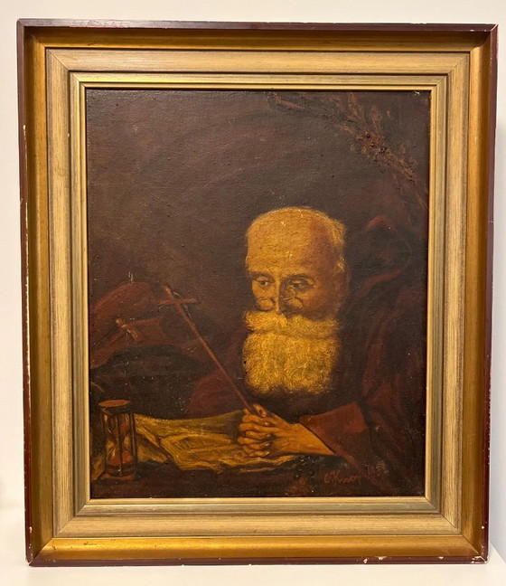 Antiek Portret van een Monnik – C. Knorr (1897) – Olieverf op Doek