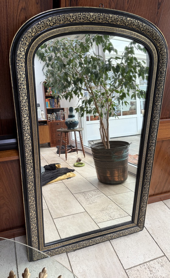 Plongez dans un univers d'élégance intemporelle avec ce somptueux miroir ancien. Son cadre noir et or finement ouvragé témoigne d'un savoir-faire exceptionnel et apporte une touche de grandeur à tout intérieur classique. Imaginez cette pièce d'exception ornant votre espace de vie, y reflétant lumière et raffinement. Les détails complexes du cadre en bois ajoutent une note luxueuse, faisant de ce miroir un élément remarquable de votre décoration. Parfait pour sublimer les espaces traditionnels ou d'inspiration vintage, sa taille généreuse lui confère à la fois fonctionnalité et esthétique. Ajoutez ce miroir d'exception à votre collection et rehaussez le style de votre maison.