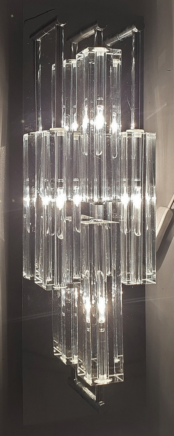 Applique murale vintage composée d'une structure chromée et de quatre rectangles de cristal.