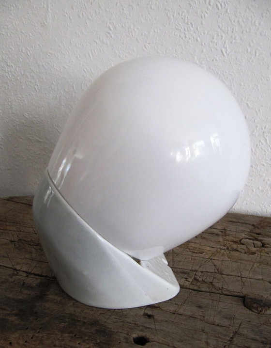 Applique murale, modèle 6011, en porcelaine et verre opale, dessinée par Wilhelm Wagenfeld pour Lindner Leuchten (Allemagne), vers 1955.