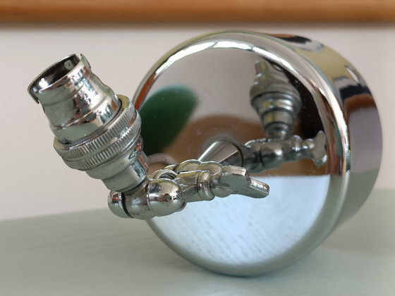 Il s'agit d'une magnifique applique chromée au design italien minimaliste, qui rappelle une lampe de bureau classique. Elle est inclinable à 180° et rotative à 360°, ce qui la rend idéale comme liseuse ou comme objet de décoration dans une chambre à coucher ou un bureau. La lampe est compatible avec une ampoule B22, facilement disponible en ligne, et comprend un transformateur 220/12V intégré. Bien que la plaque murale soit manquante, elle peut être remplacée par un support en U disponible dans une quincaillerie. Cette pièce intemporelle des années 90 incarne un style industriel, parfait pour ceux qui apprécient un design épuré et fonctionnel.