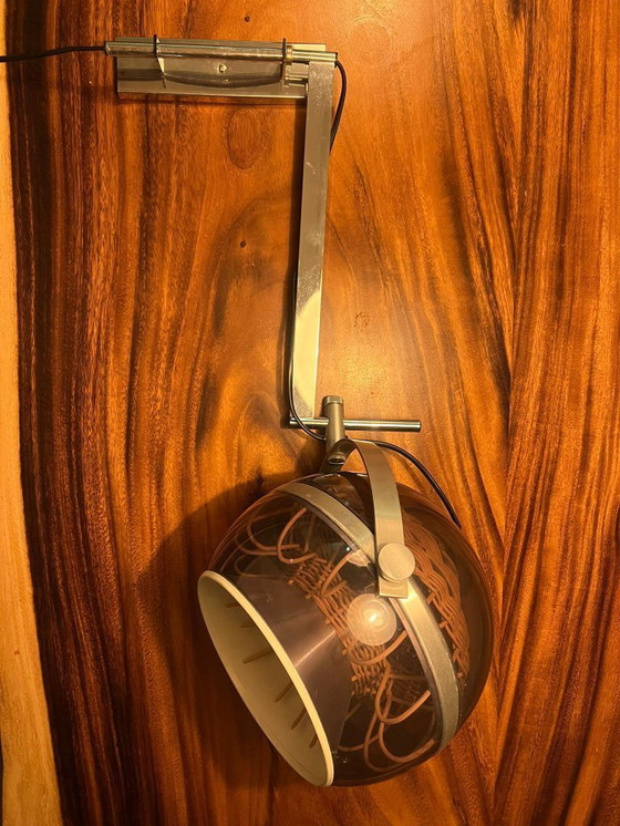 Montée sur un cardan chromé robuste, la lampe permet une inclinaison et une rotation complètes de la sphère. Son bras mural chromé brillant et épuré lui donne une allure luxueuse et architecturale. Contrairement aux lampadaires classiques, cette applique est beaucoup plus rare. Caractéristiques :