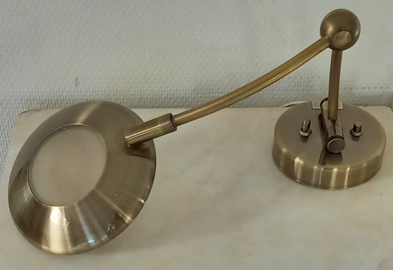 Cette élégante applique murale signée Jan des Bouvrie respire la sophistication et la modernité. Avec ses lignes épurées et sa finition dorée, elle apporte une touche de luxe à n'importe quelle pièce. Conçue avec un souci du détail, elle offre un éclairage fonctionnel tout en sublimant votre intérieur.