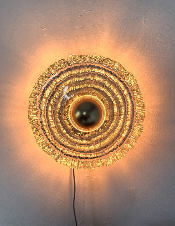 Applique murale vintage en verre dépoli, signée Peil & Putzler, marque allemande de renom, années 1970.
