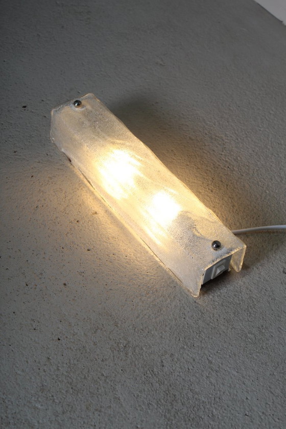 Applique murale vintage en verre dépoli des années 1970. Verre soufflé à la main, texture givrée, fabriqué en verre de Murano (Italie).