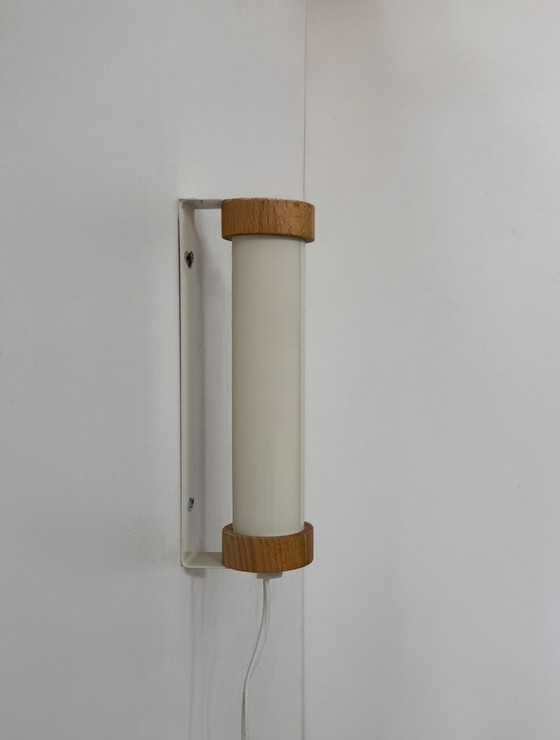 Applique vintage orientable, métal laqué blanc et pin, Suède, 1980