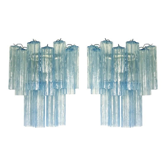 Appliques murales contemporaines « Tronchi » bleu clair de style Venini - Paire