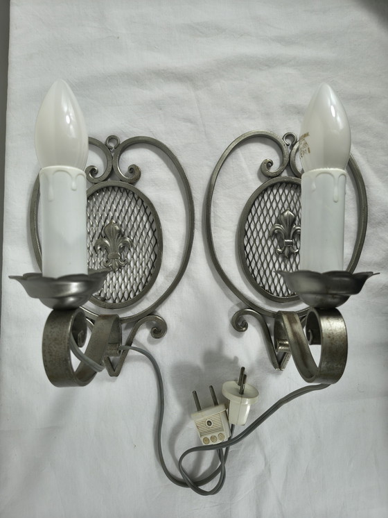 Ce magnifique ensemble de deux appliques murales françaises vintage des années 1960/70 apporte une touche d'élégance et d'histoire à votre intérieur. Ornées d'une délicate fleur de lys, ces lampes s'intègrent parfaitement à tout intérieur classique ou vintage. Fabriquées en métal galvanisé à la belle patine naturelle, elles possèdent un charme authentique et unique.