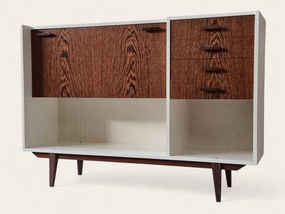 État : En bon état. Les parties blanches présentent une légère décoloration, ce qui confère au meuble une charmante patine vintage.