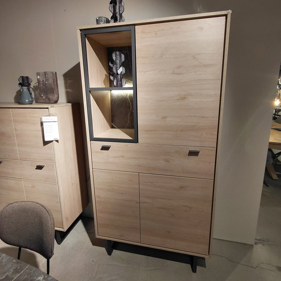 Meuble mural Helsinki de XOOON. Sublimez votre intérieur avec ce meuble de rangement au design épuré, le modèle Helsinki de XOOON. Que ce soit dans le salon ou l'entrée, Helsinki apportera une touche d'élégance à votre décoration. Fabriqué en mélaminé aspect chêne, ce meuble s'harmonise avec tous les styles d'intérieur. Doté de 3 portes, 1 tiroir et 2 niches, il offre un espace de rangement généreux. Helsinki mesure 195 cm de haut et 100 cm de large. Il repose sur un socle fin couleur graphite. L'absence de poignées sur les portes lui confère une allure sobre et épurée.