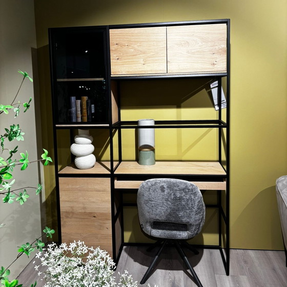 Meuble de travail Modulo Xooon 141x40x201 - Modèle d'exposition : Meuble de travail Modulo Xooon - Essence de bois : Placage chêne - Couleur du bois : Naturel - Dimensions : 141x40x201. Ce meuble Modulo de Xooon est idéal pour le salon. En déployant son plateau en bois, il se transforme facilement en bureau. Ses placards intégrés offrent également un espace de rangement généreux.