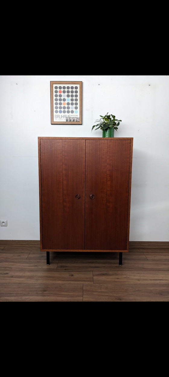 Découvrez cette élégante armoire au design scandinave vintage, une pièce maîtresse qui apportera une touche de sophistication à votre intérieur. Fabriquée en bois de haute qualité, cette armoire se distingue par sa teinte brune chaleureuse et ses lignes épurées, typiques du style nordique.