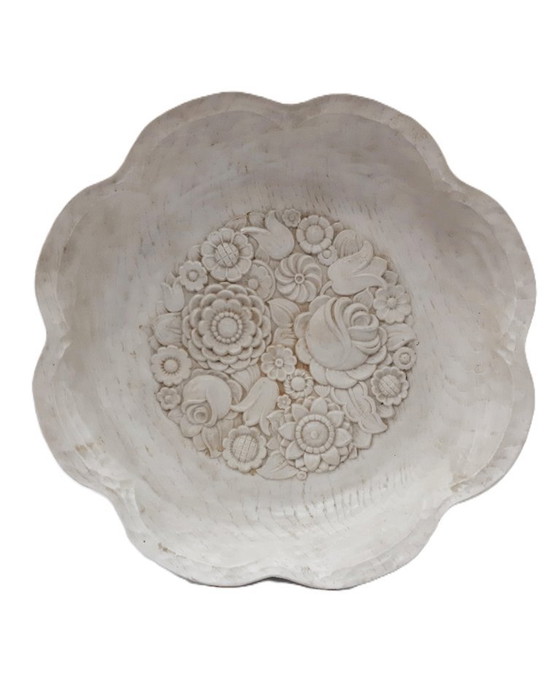 Assiette en céramique blanche en relief à motif floral Renaissance Rebirth, 25 cm