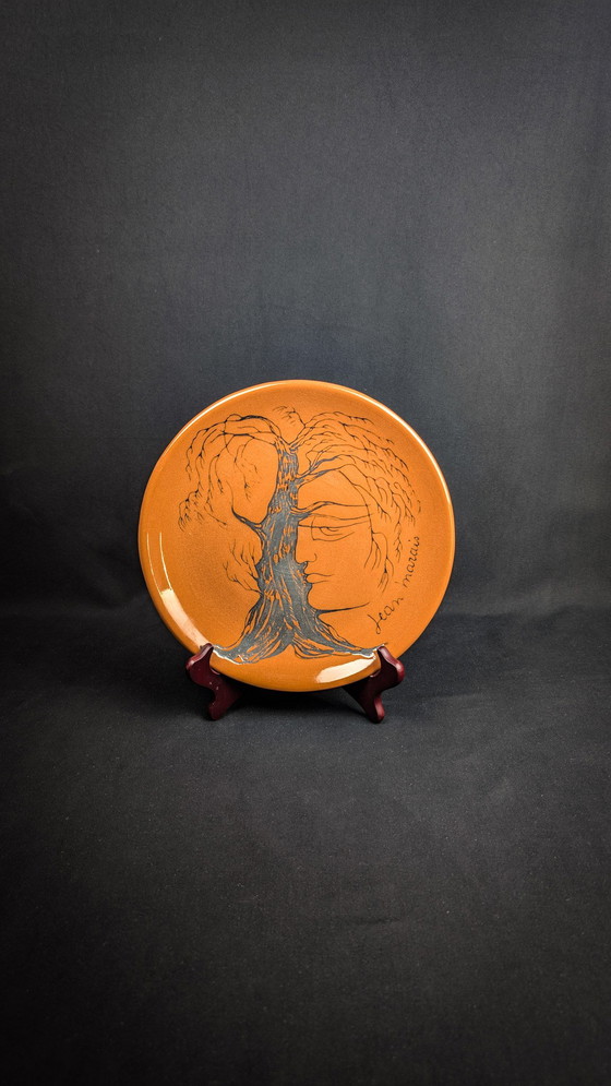 Assiette En Céramique Vernissée Signée Jean Marais Visage & Arbre Vallauris
