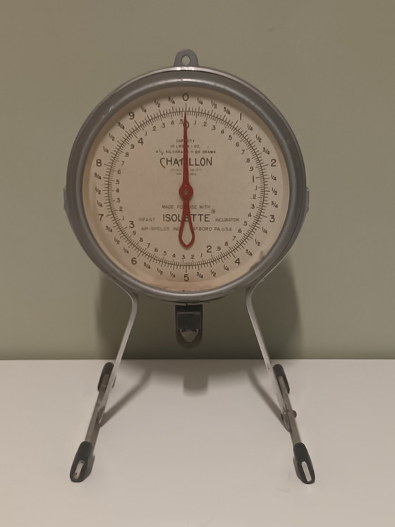 Balance pour incubateur Chatillon vintage du milieu du XXe siècle, initialement utilisée avec un incubateur. Fabriquée aux États-Unis.