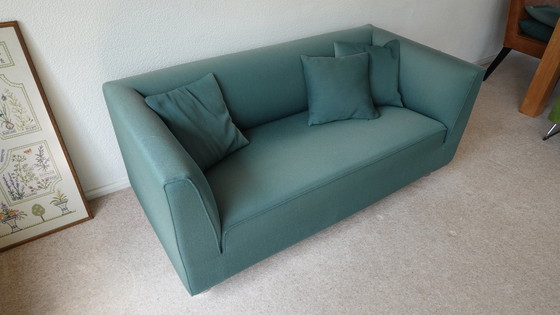 Canapé de type 4800, conçu par Henk Vos, l'un des "classiques" de Gelderland. Le canapé est revêtu d'un tissu vert (avec un certain nombre de coussins libres dans le même tissu) et offre un excellent confort d'assise. Le canapé a des pieds ronds en métal. Les dimensions sont les suivantes : largeur 160 cm, profondeur 81 cm, hauteur 70 cm, profondeur d'assise 55 cm, hauteur d'assise 43 cm.