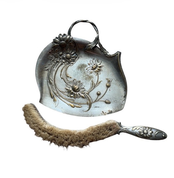 Magnifique balance à miettes ancienne, argentée et ornée d'un élégant motif floral signé WMFM.