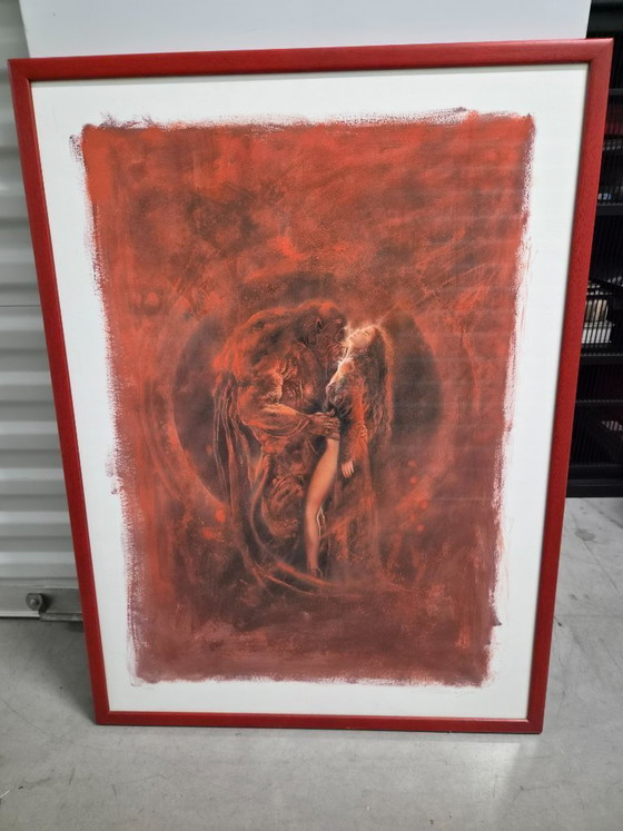 Plongez dans le charme envoûtant de cette œuvre d'art intitulée « La Belle Vie ». Cette estampe évocatrice, encadrée d'un cadre rouge éclatant, transporte le spectateur dans un univers d'émotions et de mystère. Les riches tons chauds de rouge et de brun créent un contraste saisissant avec le fond blanc immaculé, accentuant la profondeur et l'intensité de l'image.