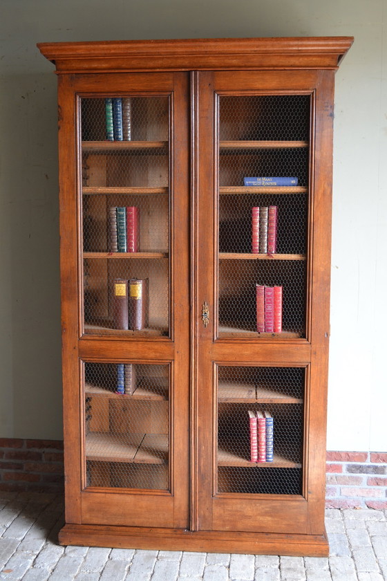 Bibliothèque ancienne en chêne avec portes en gaze