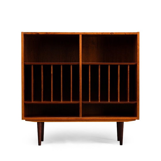 Bibliothèque danoise avec étagère à disques vinyles sur toute sa surface, en magnifique placage palissandre, fabriquée par Hundevad & Co.
