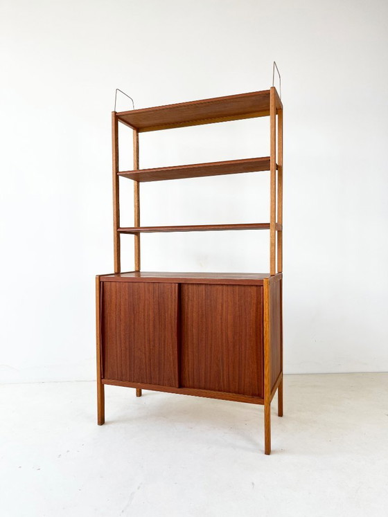 Une véritable pièce maîtresse : une bibliothèque murale scandinave conçue par Bertil Fridhagen pour Bodafors en 1962. En excellent état, elle présente des détails soignés et une finition impeccable.