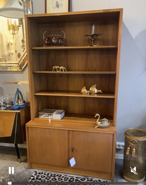 Un meuble vraiment sympa, avec un authentique style mid-century et un grand espace de rangement. Le meuble bas possède deux portes dissimulant des étagères. Le meuble haut comporte trois étagères ouvertes.