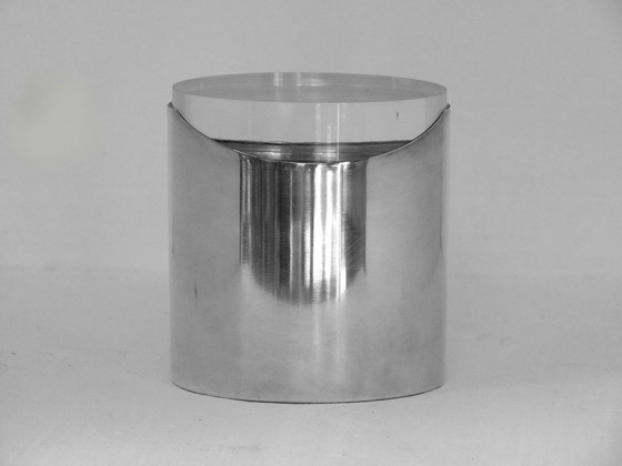 Sabattini Italie production des années 1950 boîte à bijoux en acier inoxydable avec couvercle en plexiglas, très élégante.