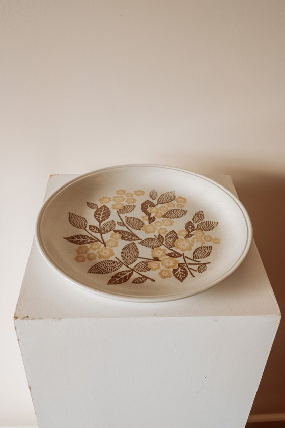 Grande assiette/plat de service en céramique à décor floral brun. Fabriquée en Angleterre dans les années 1970. En parfait état !