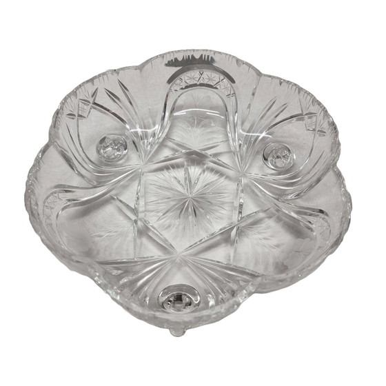 Magnifique coupe classique en cristal. La coupe a des pieds élégants et attire tous les regards sur votre table. La coupe est en parfait état. Il est supposé avoir été fabriqué en Belgique dans les années 1950.
