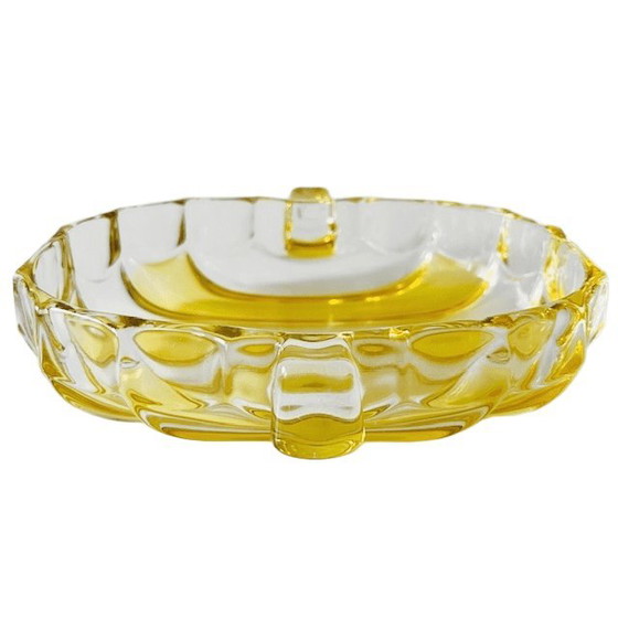 Magnifique coupe vintage en verre jaune et transparent d'August Walther & Söhne des années 1970.