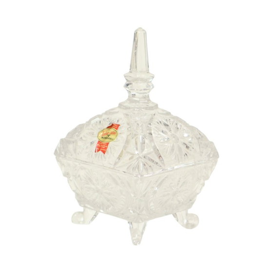 Bonbonnière en cristal vintage, plat à bonbons avec couvercle, marqué avec l'autocollant du fabricant Anna Hütte, Allemagne de l'Ouest, années 1960.