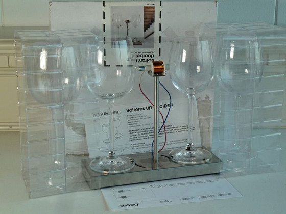 Marque : Droog / Peter van der Jagt Poids : 1,2 kg. Dimensions : 25 x 9 x 24 cm Matériau : électro-aimant, acier inoxydable, verres à vin en cristal (transformateur non compris) État : z.g.a.n. et complet avec manuel NL / EN dans la boîte d'origine Prix demandé : 125,- | Enchère à partir de 115,- La sonnette " bottoms up doorbell " - une sonnette faite de verres à vin par Peter van der Jagt pour la marque de design néerlandaise Droog - est magnifique dans sa simplicité et est désormais une icône pour le label de design. Elle met immédiatement en évidence ce que Droog représente : l'innovation, l'accessibilité et l'humour. Le fonctionnement de la sonnette est explicitement visible ; le son est produit à l'aide d'un marteau et de deux verres à vin en cristal. La sonnette Bottoms Up a reçu le prix Red Dot en 2007. Le design a été acquis par : Museo do Design à Lisbonne, Centraal Museum Utrecht, Gemeente Museum Den Haag, Musée des beaux-arts de Montréal.