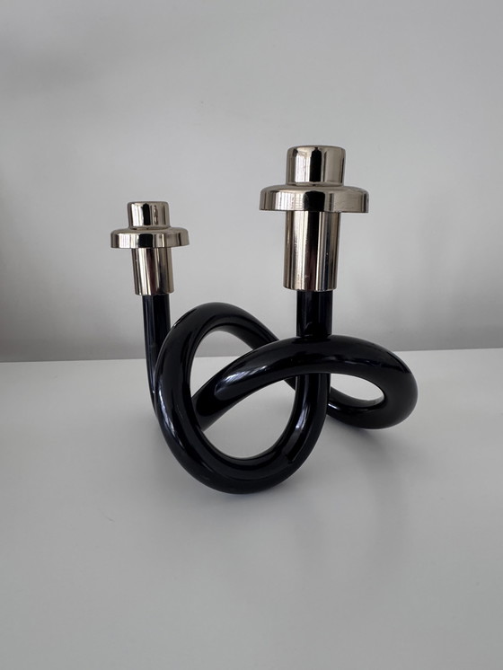 Bougeoir « Pretzel » en acrylique noir et laiton, dans le style de Dorothy Thorpe, années 1960