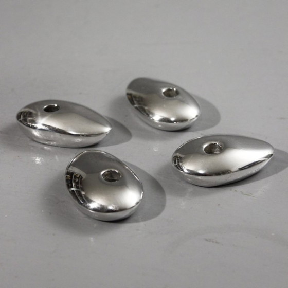 Ensemble de 4 bougeoirs formants galets en métal argenté de belle facture, concus pour accueillir de fines bougies comme les Nagel.
