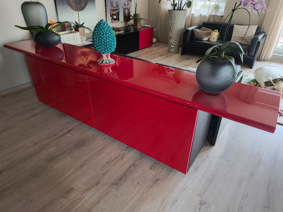 Découvrez l'élégance intemporelle du buffet Sheraton d'Acerbis & Stoppino, un chef-d'œuvre du design moderne alliant fonctionnalité et style. Mesurant 280 cm de long, cette pièce iconique se distingue par sa finition brillante d'un rouge éclatant, apportant une touche de sophistication à tout intérieur.