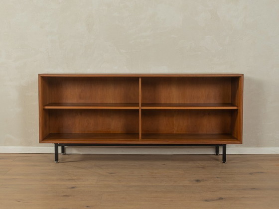 Magnifique buffet des années 1960. Corpus en placage de noyer avec deux étagères et de nouveaux pieds carrés en acier noir. Très bonne finition, matériaux de haute qualité, corps avec chants en bois massif. Fabriqué en Allemagne, fabricant : Lothar Wegner.