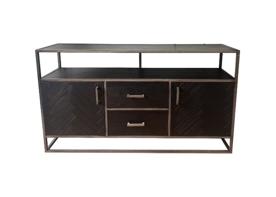 Buffet élégant avec structure en métal et détails en bois. Ce buffet offre un grand espace de rangement grâce à ses tiroirs, portes et étagères. Un véritable accroche-regard dans tous les intérieurs ! Idéal pour le salon ou la salle à manger.