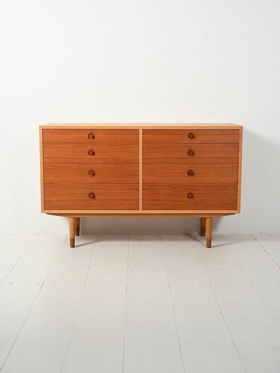 Buffet danois « Øresund » pour Andersson & Söner, années 1950-1960, en teck et chêne, à huit tiroirs.