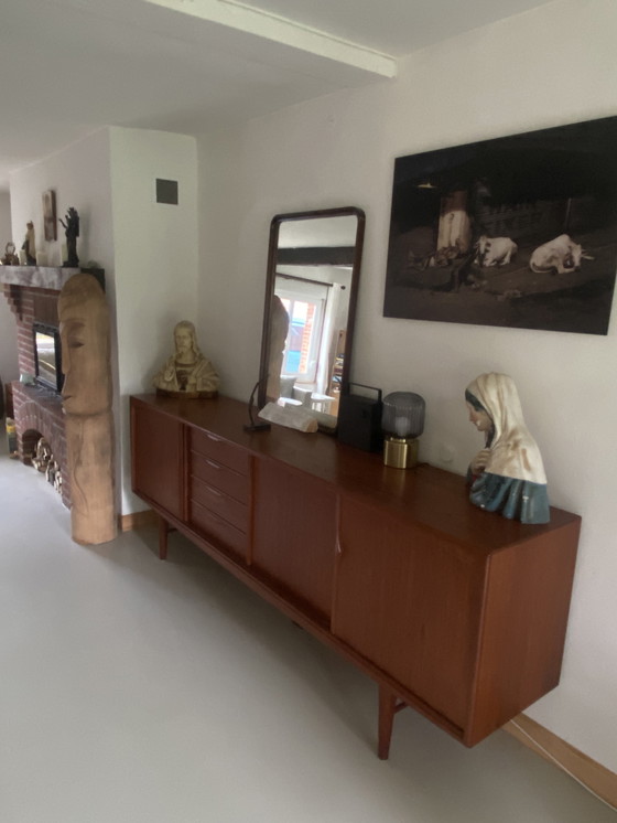 Buffet en teck de haute qualité, fabriqué au Danemark. Magnifique modèle imposant : 240 cm de large, 47 cm de profondeur et 88 cm de haut.