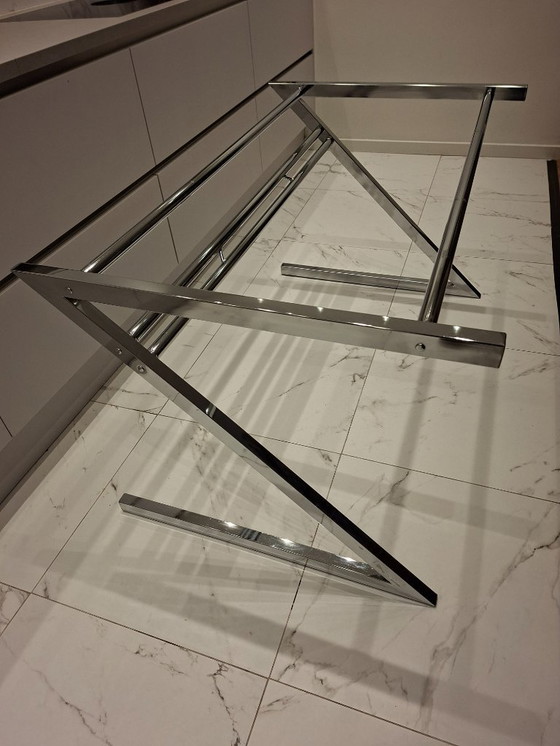 Bureau design avec structure en acier chromé et plateau en verre noir. Acheté chez Hulshoff entre 2015 et 2016.