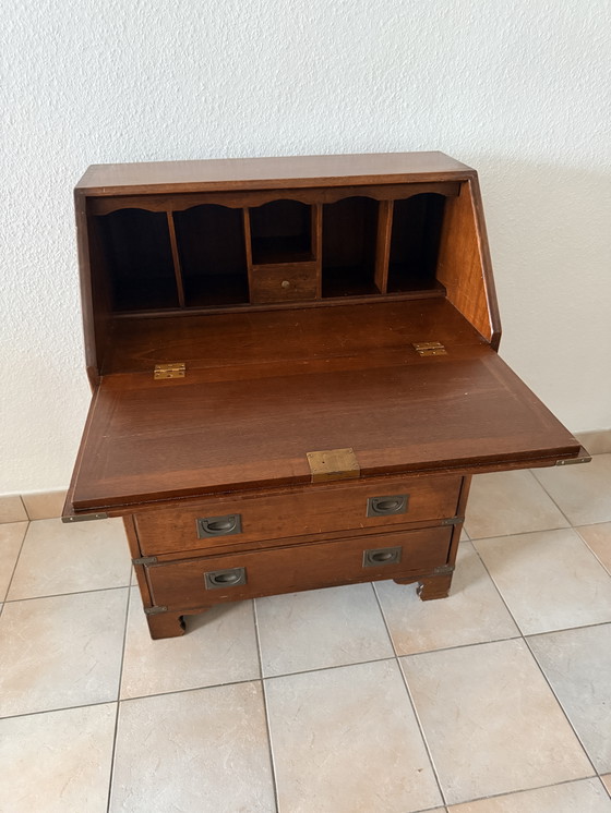 Secrétaire compact de style campagne anglaise, inspiré du mobilier militaire britannique traditionnel.